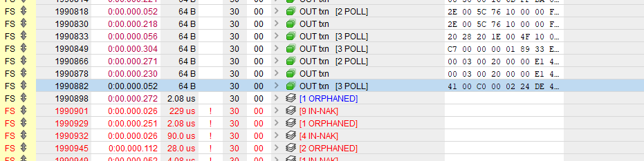 xobs | Because what I see from the device side when I attach a debugger here is that the last packet the device received was 0x41 00 c0 00 ..., and it's waiting for the last 64 byte packet, but the host thinks it's sent all of the data and it's waiting for the device to respond with "ACK". | 01:31 |
